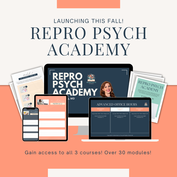 I am thrilled to announce the launch of my first-ever online course this fall: Repro Psych Academy! Designed with customizable learning paths, Repro Psych Academy offers 3 progressive pathways with 30 self-paced modules tailored to your professional interests and career goals. Whether you're a psychiatrist, psychologist, OBGYN, PCP, nurse practitioner, social worker, midwife, doula, pelvic floor physical therapist, lactation consultant, pediatrician or any other healthcare provider treating women, these courses are for you!